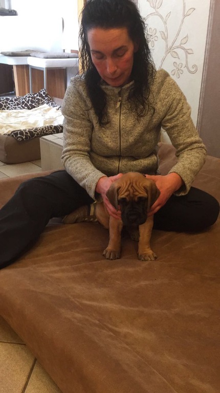 3 Familien besuchten uns am Wochenende, um sich IHREN Welpen auszusuchen. Gerd ist der gelbe Rüde, er zieht in einen Doggen erfahrenen Haushalt.